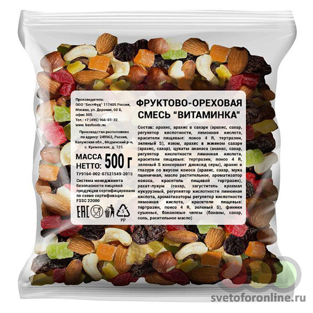 Фруктово ореховая смесь Витаминка 500 гр БестФуд ООО (производитель) - Купить в магазине "Светофор" село Супонево, ул.Шоссейна,3